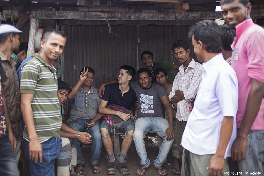 On se balade sur le port de Dhaka et on se fait inviter par un homme sur un bateau pour boire un chaï. Il me drague ouvertement, malgré la présence de Kélig. Il demande à me prendre en photo, ok. Puis une photo de lui et moi, ok. Je pose à côté de lui et au dernier moment il m’enlace et pose sa grosse main sur mon sein, tout en continuant à sourire à l’objectif. Mon visage se vide de son sang. Il veut une autre photo, mais mon homme, à qui je lance un regard de détresse, lui fait comprendre que ça suffit…Difficile de se dépatouiller de cette situation toute seule. Je décide amèrement de ne plus toucher ni me laisser toucher par personne dans ce pays. C’est extrême mais c’est plus sûr.